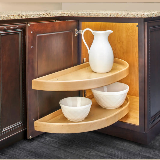 Natural Wood Half Moon Organizer for Blind Corner Cabinets