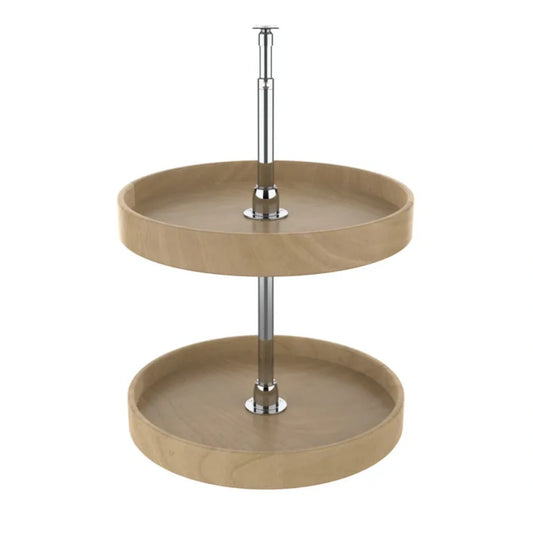 Lazy Susan – Kidney-Shaped, Natural Wood, 2-Shelf Organizer for Wall & Upper Cabinets